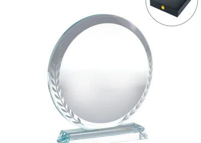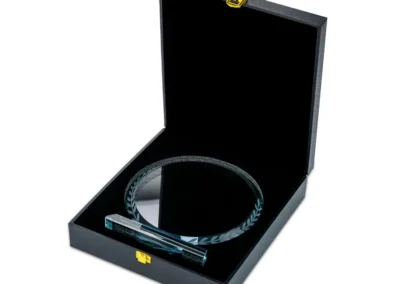 Packaging: Premium vertical-opening black fiberboard box with gold lock closure, The Round Clear Crystal Award with Engraved Leaves is a sophisticated recognition piece crafted from premium crystal glass. Its elegant leaf engraving adds a refined touch, making it perfect for honoring achievements, milestones, and special occasions. Housed in a luxury black fiberboard box with a gold lock closure, this award exudes prestige. Multiple printing options allow for full personalization, ensuring a premium and memorable finish.