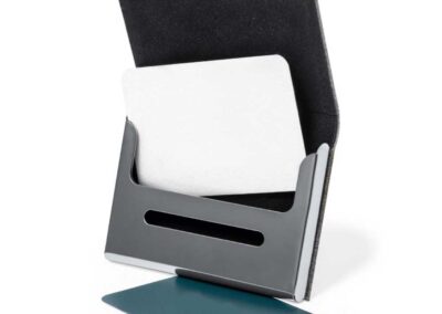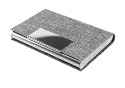 A stylish and environmentally sound choice for promotional gifts is business card holders made of RPET (Recycled Polyethylene Terephthalate) and chrome metal that can store 20 cards.