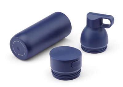 RUVO by Hans Larsen is a 2-in-1 modular hydration set with interchangeable water bottle and leakproof coffee tumbler lids, double walled vacuum insulated stainless steel (SS304 inside and outside) and robust construction quality. Switch comfortably between both lid types for a bottle or tumbler drinking experience. This set is perfect for drinks of all temperatures, and the wide mouth makes it easy to add ice cubes. Packed in a sustainable, recyclable kraft box. Capacity: 400ML