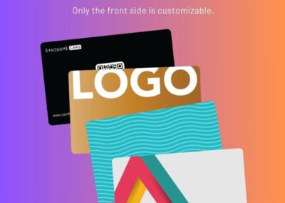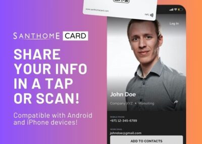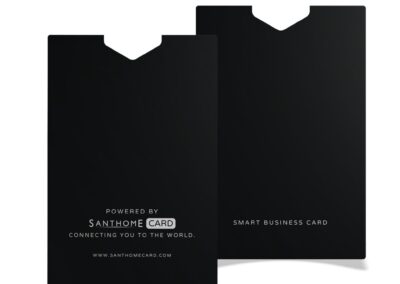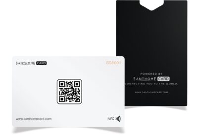The fastest, most innovative to share your business information! Powered by Santhome, this NFC card is a modern alternative to traditional paper business cards. Instantly share all your essential business contact information, social links, photos, company information, meetings calendar and more with 1 tap or scan the QR code. It is very cost-effective, environment-friendly, and works completely app-free – no download required so start using Santhome Card immediately! The entire front side is fully customizable and has infinite uses! It is a great tool for lead generation and digital asset integration. Credit card size to fit any wallet. Compatible with iPhone and Android without app installation! GDPR compliant.