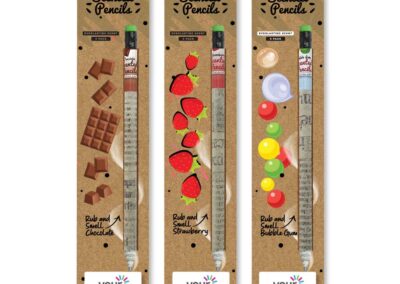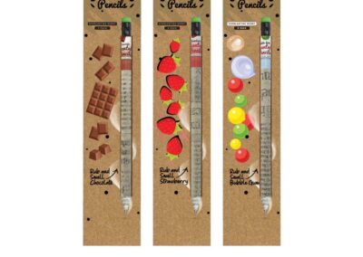An environmentally friendly product is a set of scented pencils. Five of these pencils are included in the package. This collection includes strawberry, strawberry gum, and chocolate smells. As a result, it makes a fantastic natural gift for advertising.