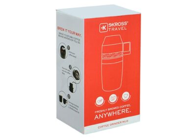 Skross® Coffee Maker is a portable pour-over specialty coffee maker and grinder featuring an intuitive design with an inbuilt 160ml insulated tumbler for enjoying freshly-ground coffee wherever you go. It consists of a coffee grinder with a hand-mill, dripping kettle, etched stainless filter and tumbler, and all of those components are integrated into a single assembling unit. Wherever you are, with Skross® Coffee Maker, whole beans and hot water, you can easily and conveniently make fresh and tasty coffee of your own, at 1/10th of the cost of buying coffee. Swiss Design from Skross, with 1 year brand warranty.