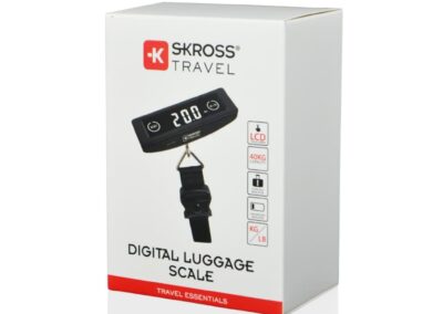 Skross Luggage Scale is a premium luggage scale with a LCD screen. Designed in Switzerland with a high precision strain gauge up to capacity of 40kg. Equipped with data lock function, overload indicator, low battery indication and auto-zero/auto-off function. Unit measurements are kg and lb. Includes 1 year brand warranty. Packed in a gift box