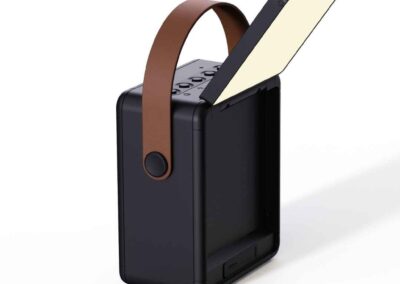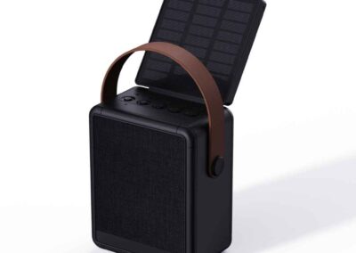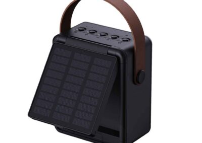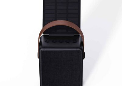 SOLA – @memorii RCS-Certified Recycled Solar Speaker & Lamp is a powerful 10W Bluetooth Speaker and LED Lamp made from RCS-certified recycled plastic and comes with an integrated, adjustable high quality monocrystalline solar panel. The battery is 1500mAh and can be charged with cable or using solar panel with 8-9 hours of strong sunlight. Once fully charged, the bluetooth speaker has 6-8 hours of continuous playtime. With mic and pick up function to answer calls. Total recycled content: 29% based on total item weight. RCS certification ensures a completely certified supply chain of the recycled materials. Sola is also water-resistant with IPX5 rating. Packed in a FSC-certified gift box.
