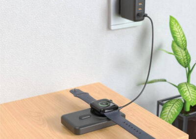 This 4-in-1 multifunctional 10,000mAh wireless powerbank features an inbuilt Type-C and Lightning cable for easy, on-the-go charging. It supports magnetic wireless charging up to 15W for smartphones, and a dedicated 2.5W output for wirelessly charging your Apple Watch, ensuring all your devices stay powered efficiently. Compact and versatile, Solano packs all output charging options (wireless or wired) in one powerbank so you never miss a charge. Packed in a gift box with input charging cable included.
