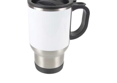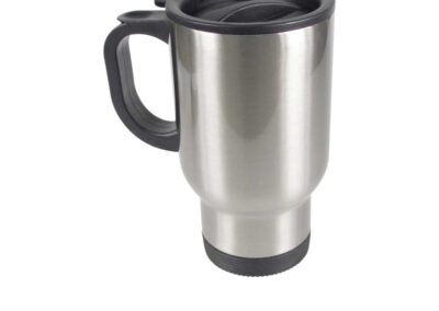 The designs of stainless steel mugs are distinctive and imaginative. It has one stainless steel exterior wall. An extremely robust plastic substance makes up the inner wall. This stainless steel mug has a black plastic material for the base and lid. These advertising mugs have a long, streamlined design. It includes a distinctive base. They stand out from other objects because of the base. It can hold 14 ounces of liquid.