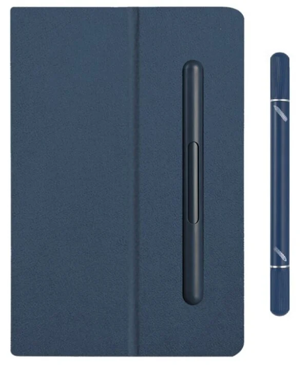Stylish and functional, this A5 notebook features a unique 3D design cover. It comes with a smart 2-in-1 writing instrument—pen on one end, pencil on the other—secured by an elastic loop. The cover folds into a convenient mobile stand, and an additional elastic band ensures secure closure. Product Size: 20 × 14.1 × 1.5 cm Packaging: Kraft Paper Box