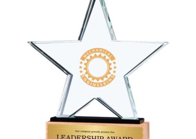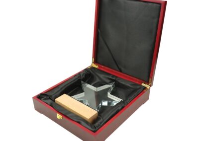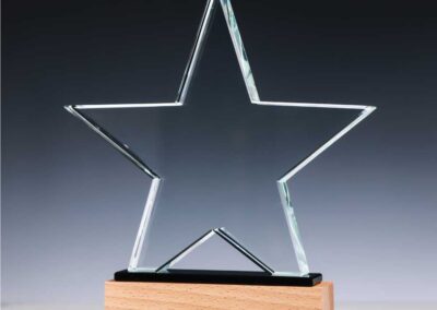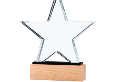 Material: Crystal and Wood | Item size: 200 x 40 x 230 mm | Weight: 1.678 kg, Star-shaped crystal awards are beautiful and symbolic symbols of honor and prosperity. The excellence, brilliance, and relevancy of the recipient’s achievements are eloquently expressed in these awards, which wonderfully reflect the essence of inspiration, aspiration, and outstanding performance.