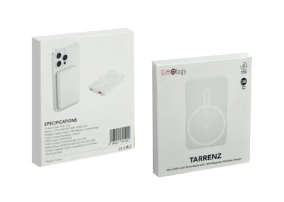 Tarrenz is a 5,000 mAh fast charge magnetic 15W wireless powerbank that utilizes the latest Magsafe technology for magnetically attaching to iPhone 12+ models without needing a cable. Also comes with a magnetic ring making it compatible to other wireless phones too. Packed in a gift box