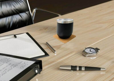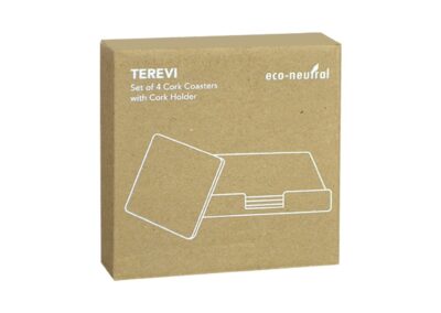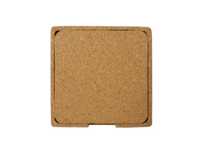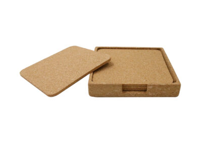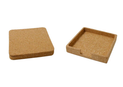 Set of 4 natural cork coasters in a cork stand. Packed in a gift box