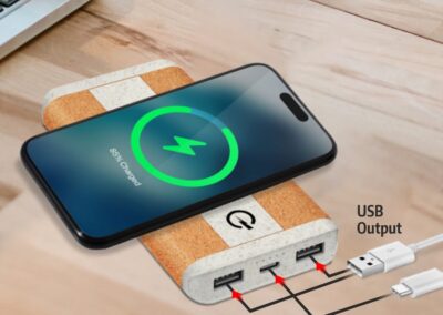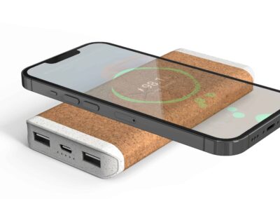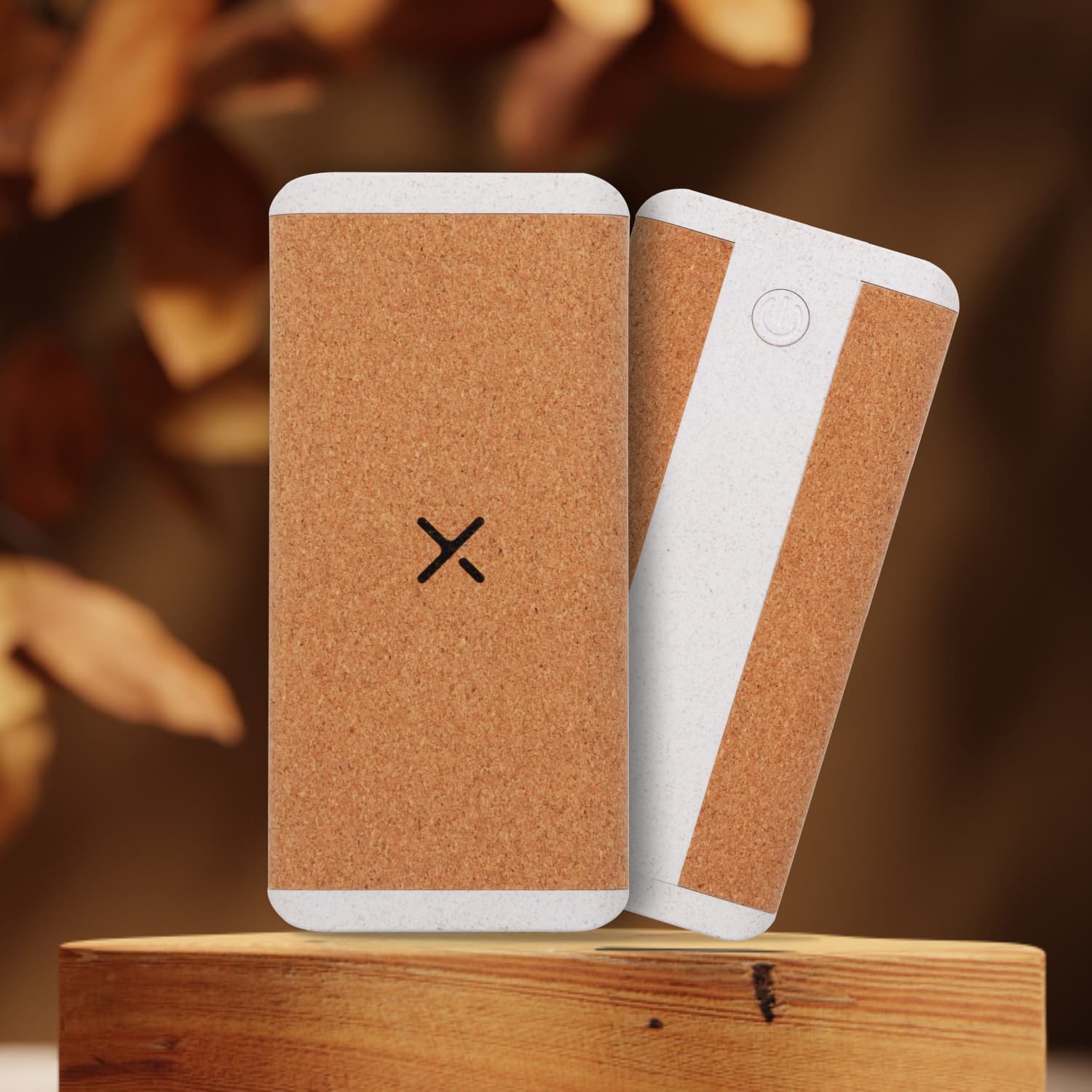 A sustainable 10,000 mAh wireless powerbank made of a combination of cork & wheatstraw. It includes various different kinds of ports so you can use any of the cables you have on hand depending on the device. It is also relatively compact considering its capacity and includes a 15W wireless charger which ensures quick wireless charging.