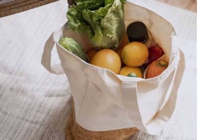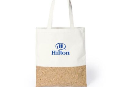 Shopping Tote Bag made with 145GSM recycled cotton and natural cork finish. Stylish look.