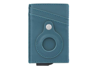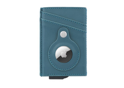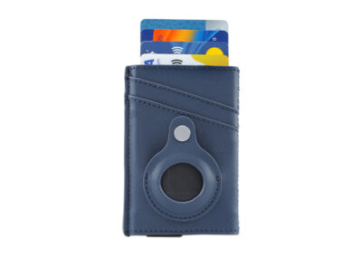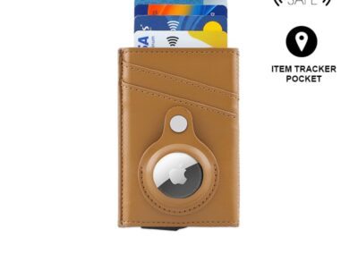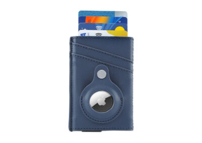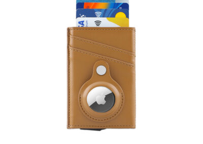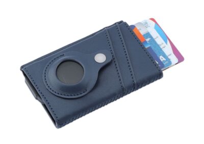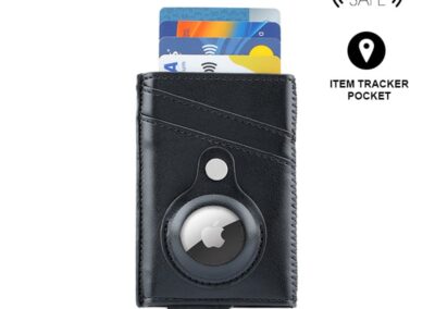 Contemporary, durable and high-quality RFID cardholder with Santhome Tag / Airtag pocket. The holder has a sliding mechanism and fits 5 cards in the case with anti-skimming RFID technology. Additional pockets outside help fit 4 additional cards, so total 9 cards can be carried at once. Pocket is suited to fit Apple Airtag or Santhome Tag that can track your card wallet worldwide so you never lose your credit and ID cards again. Packed in a gift box.