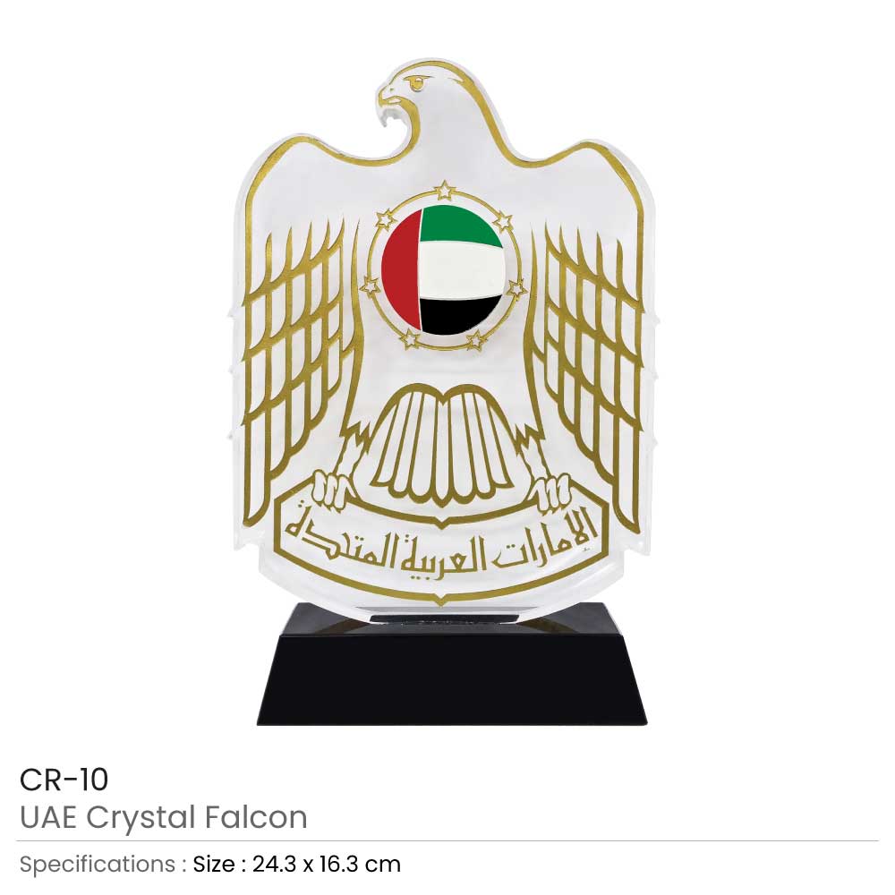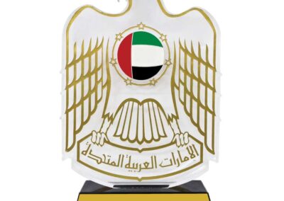 People feel as patriotic as they should feel when they see the UAE falcon crystal trophy. This crystal award features a falcon-shaped design.