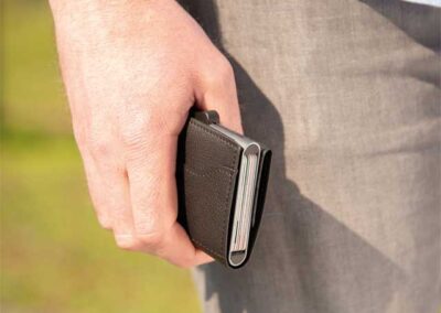 No more electronic pickpocketing , broken or bent cards ! This is the ultimate wallet for regular card user. The XL cardholder in PU Leather can hold upto 12 cards. The side button slider will push the cards up gradually. The wallet can hold your cash or more cards.