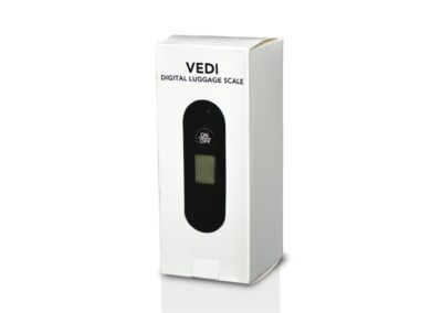 Vedi is a digital luggage scale with maximum capacity of 40kgs, overload & low power indicator, and automatically switches off after 60 seconds. Available in two colors.