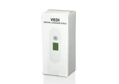 Vedi is a digital luggage scale with maximum capacity of 40kgs, overload & low power indicator, and automatically switches off after 60 seconds. Available in two colors.