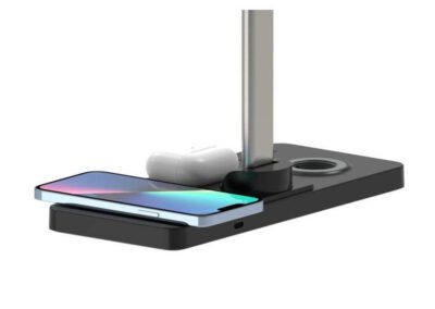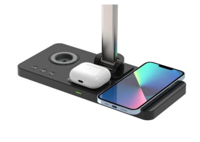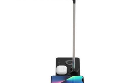 Veles is a Smart Light with 3-in-1 wireless charger simultaneously charging your smartphone, earpods and smart watch, compatible with iOS and Android devices. Veles is USB-C powered with wireless output of 15W for Mobile phones + 3W Wireless charging for TWS earpods. For smart watches, Veles contains a foldable holder to place any type of magnetic charger for smart watches. Comes with 3 LED light settings