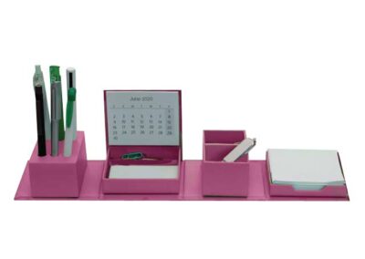 Vernon is a box that expands to be a useful workdesk tool. Comes with fun filled water marks, 6 pen holder slots, Memo pads 150 sheets of 70gsm, 30 paper clips and 2 year calendar.