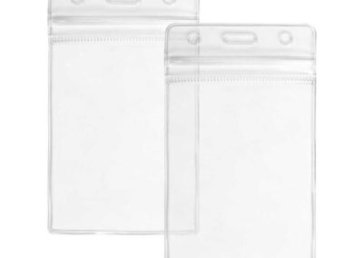 Vertical display with top loading. secure access card.Clear Plastic Vertical ID Card Holder 69×115 mm with Resealable Zip, Can fit standard ID card size or any card not bigger than 62×85 mm.