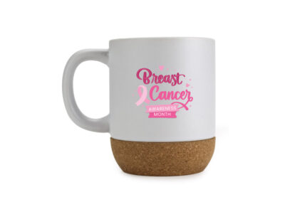 White Ceramic Mugs with Breast Cancer Awareness Logo