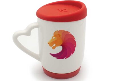 Because of their distinctive color combination, which makes them stand out from other ceramic mugs, white ceramic mugs with silicone caps and bases are fast becoming our favorite personalized ceramic mugs. These mugs are sturdy yet lightweight and portable thanks to the ceramic material that was utilized in their construction. The base and lid are composed of multicolored, flexible silicone that is both sturdy and soft. Its inventive little handle in the form of a heart makes carrying it simple. These mugs have a sublimation coating, making it simple to print your logo in full color on them in Sharjah.