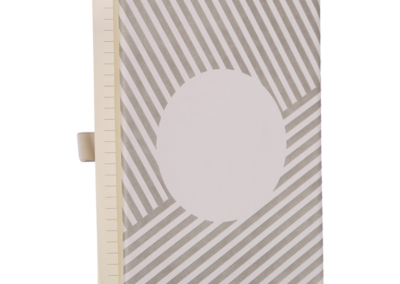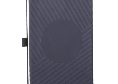 A5 notebook with 5W Wireless Charger in debossed pattern design. Has 88 sheets of cream lined paper and 8 sheets of blank paper. Charging port in upper side of notebook. Comes with Pen loop and elastic closure. Product Size: 21.5x14x1.7cm Packaging: Non Woven Sleeve in a Cream Paper Box