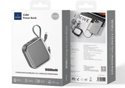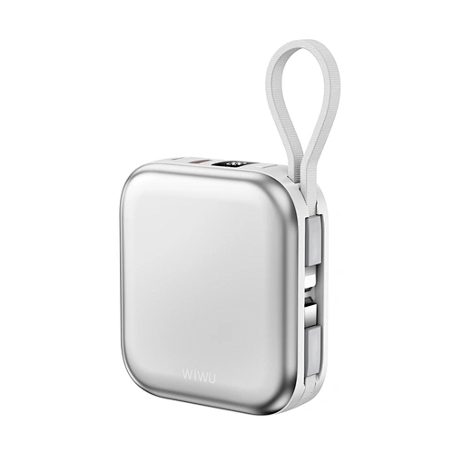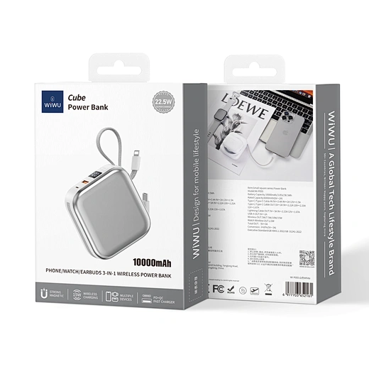 Simplify your power needs with the WiWU Cube 5-in-1 Power Bank. This is the ultimate, all-in-one portable charging hub, designed to power your entire collection of devices. The main surface features a 15W magnetic wireless charger for your smartphone and a dedicated 2.5W module for your Apple Watch. Tucked neatly into the sides are two built-in fast-charging cables—one USB-C and one Lightning—ready for your tablet or other gadgets. Need another port? The extra USB-A port supports up to 22.5W of super-fast charging. The clear digital display keeps you informed of the remaining 10000mAh of power, while the compact, cube-like design with an integrated lanyard makes it incredibly easy to carry. It’s the only power bank you need to keep everything charged, everywhere you go.