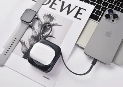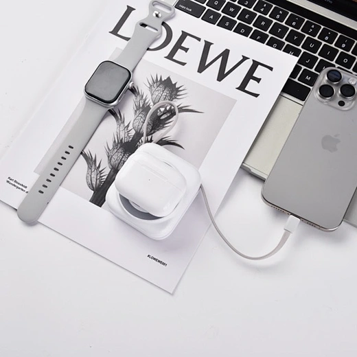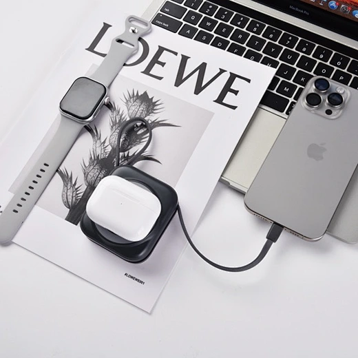 1. 10000mAh large capacity for extended battery life, supports wireless charging for phone, earbuds, and watch, with built-in Lightning + Type-C cables.