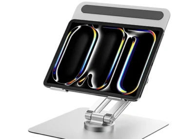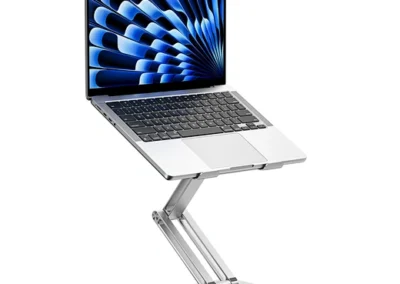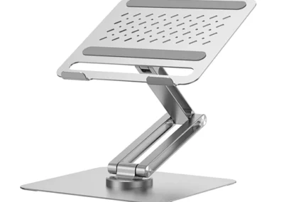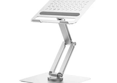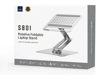 The WiWU Ergonomic Aluminum Alloy Laptop Stand S801 Rotative Adjustable Notebook Holder offers a range of essential features and advantages to elevate your laptop-using experience. Made of high-quality aluminum alloy, it guarantees exceptional durability, stability, and thermal conductivity. The rotative and adjustable design allows you to customize the angle and height to fit your needs and enhance your posture. This ergonomic laptop stand is versatile and suitable for 17-inch laptops, freeing up desk space and giving you easy access to your device. Additionally, it has a non-slip silicone pad to keep your laptop secure and prevent it from skidding at any angle. The WiWU stand promotes a healthy work environment by reducing neck, back, and eye strain, providing a comfortable and relaxed reading, typing, or browsing experience. The stand is also portable and lightweight, enabling you to carry it anywhere, anytime. Whether you’re working from home, at the office, or on the go, this free-rotative laptop stand ensures your comfort and productivity. Say goodbye to discomfort, poor posture, and inefficient work with the WiWU Ergonomic Aluminum Alloy Laptop Stand S801 Rotative Adjustable Notebook Holder.