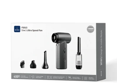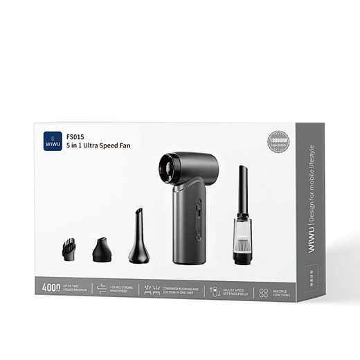 Experience ultimate cooling with the WiWU Hurricane Fan. Equipped with a 4000mAh battery and 7.4V ultra-high power, it delivers intense wind in a stylish metallic-painted design. Suitable for desks or travel, this fan is built for those who need strong, lasting airflow.