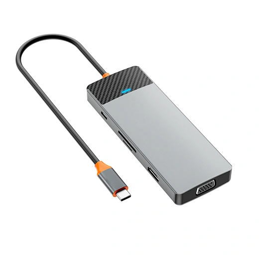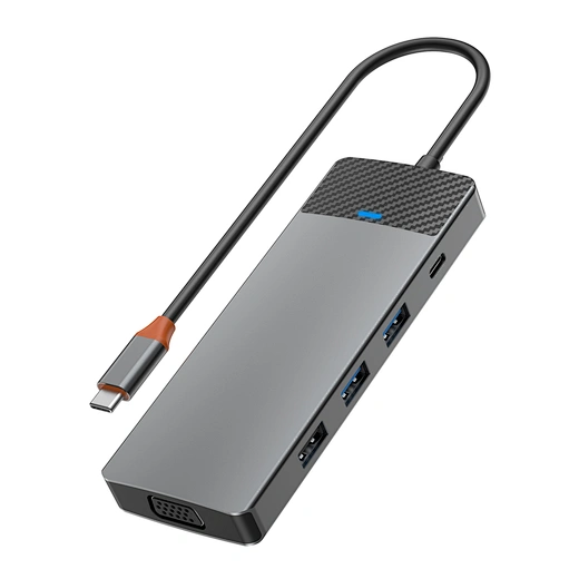 USB C to USB3.0*2+USB2.0*1+SD/TF(3.0)+PD(100W)+USB-C(3.0)+HDMI(4K30HZ)+VGA(1080P)