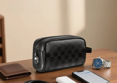 Travel with complete peace of mind. The WiWU Phantom Pouch is meticulously designed for the modern traveler who values both security and sophistication. Its standout feature is the built-in, three-digit combination lock, providing a robust layer of security for your personal items, from tech gadgets to toiletries. The durable PU leather exterior showcases a timeless checkerboard pattern, while the spacious main compartment is lined with a soft, scratch-proof material to protect your belongings. Despite its compact size, the interior is surprisingly roomy, offering ample space for all your travel essentials. It’s the ultimate organizer for those who demand style without compromising on safety.