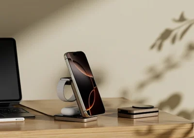 Charge smarter and faster with the WiWU Wi-W038 Magnetic Wireless Charging Station. Designed for iPhone, Apple Watch, and earbuds, this sleek 3-in-1 charger offers 15W fast wireless charging with built-in protection against over-voltage, overheating, and overcurrent. The foldable and lightweight design makes it a perfect travel companion, doubling as a stand for hands-free viewing. With its premium metal panel and compact body, it brings elegance and efficiency to any desktop or nightstand.