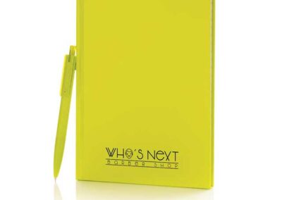 Ruled A5 hardcover standard notebook set including plastic pen. 160 pages of 70g/m2 inside. White coloured pages. Packed in Gift box.
