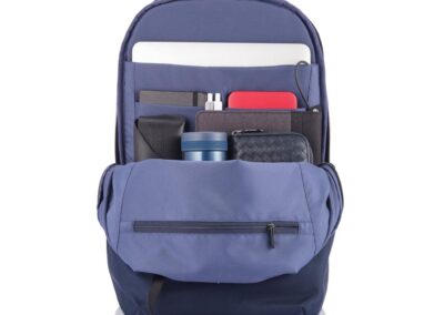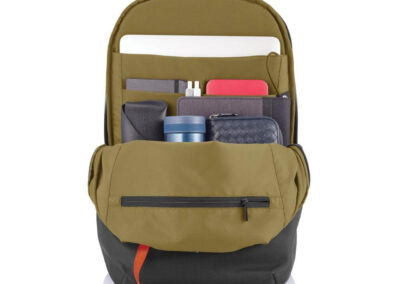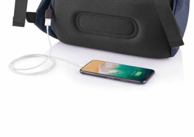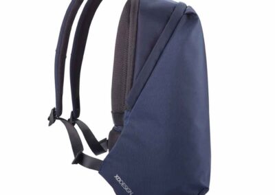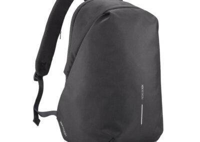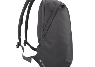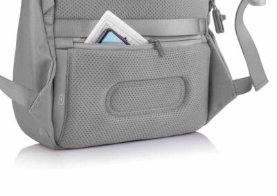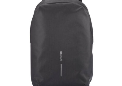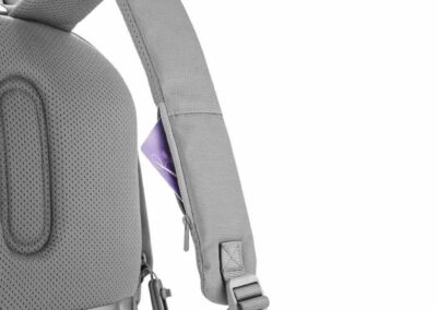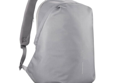 For university, school, work or your next trip, the Bobby Soft Backpack is ready! The iconic Bobby anti-theft design with hidden RFID protected pockets, no front access and hidden zippers is now complemented with a safe zipper puller on the main compartment. In the main compartment, you can easily organise your gear with a padded 15.6″ laptop compartment, notebook pocket, smart pockets and a keychain clip. The top of the backpack is expandable giving additional space. This backpack is also equipped with an integrated USB charging port and water repellent material. Made from R-pet materials and AWARE™ tracer. With AWARE™, the use of genuine recycled fabric materials and water reduction is guaranteed, by using the AWARE disruptive physical tracer and blockchain technology. Each Bobby Soft saves 23L of water and reuses 39 plastic bottles. Registered design®