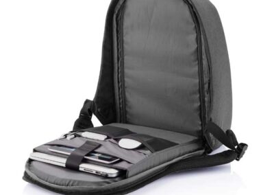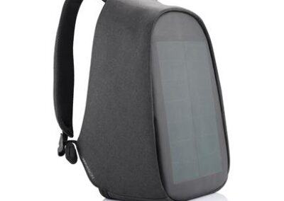 Bobby Tech is the ultimate backpack for gadget lovers; combining safety, comfort and the latest technology into great features. The integrated solar panel will ensure that you can charge your devices directly from solar power and never run out of power. An integrated wireless charging module makes sure you can charge your mobile device without the hassle of any cables. Bobby Tech has adjustable internal dividers which allow you to divide your backpack in many different ways. The patented fid lock system on the shoulder strap gives you quick and easy access to your phone or bottle/coffee cup. And of course the original Bobby features as hidden zippers, RFID protected pockets and cut proof PP board protection are still there. Registered design®