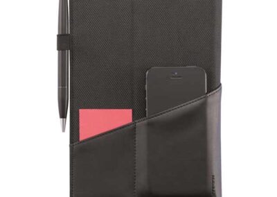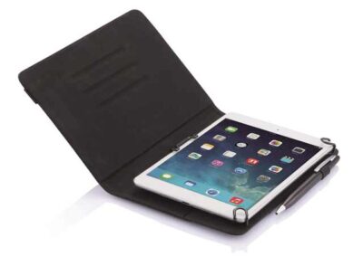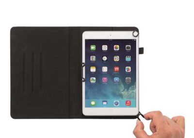 Komo Universal Portfolio is a stylish genuine leather portfolio with outer pockets and an integrated universal tablet holder that can be easily propped for presentations. The unique and patented system makes it possible to fit in most 7-8″ tablets. Registered design