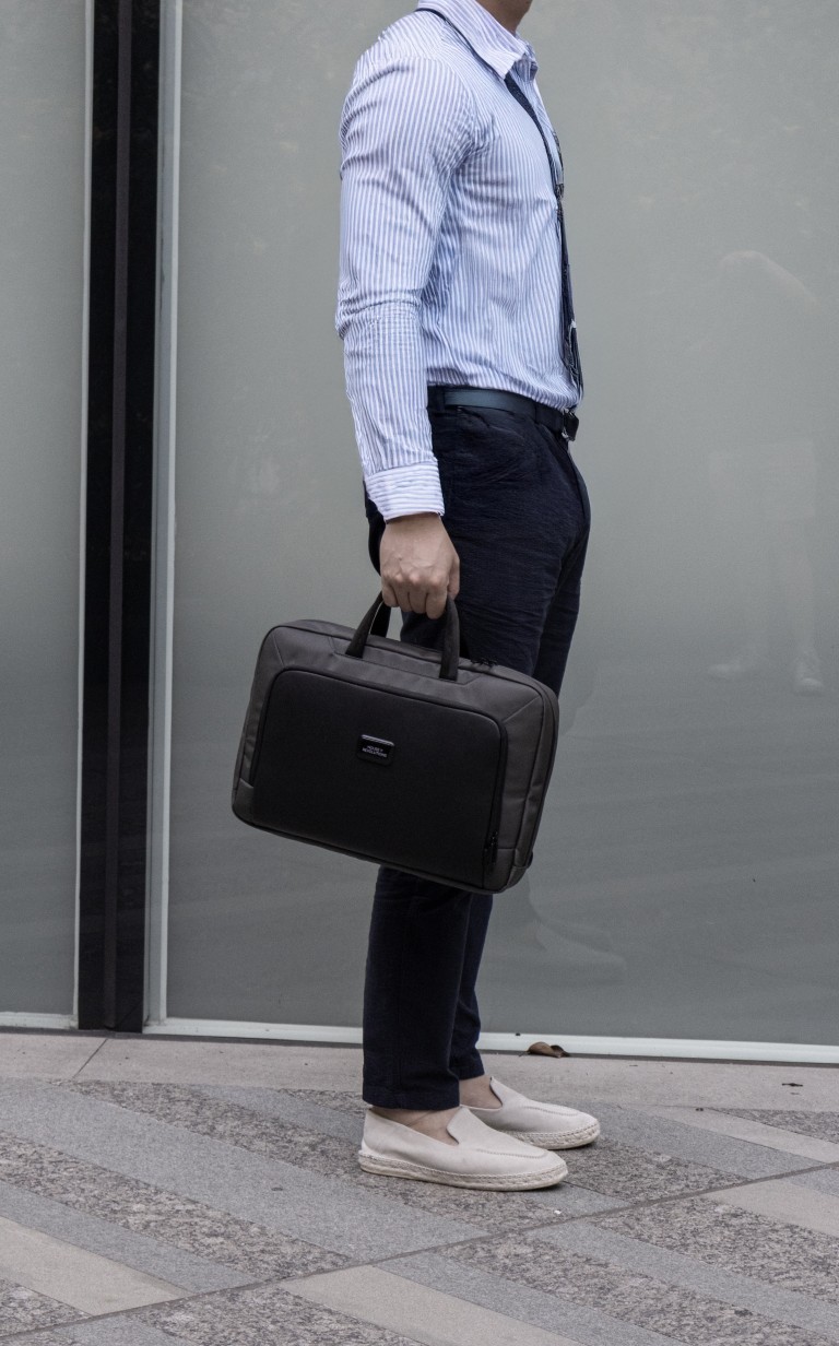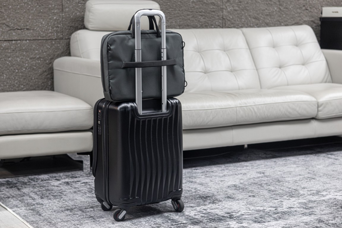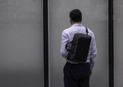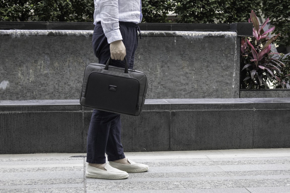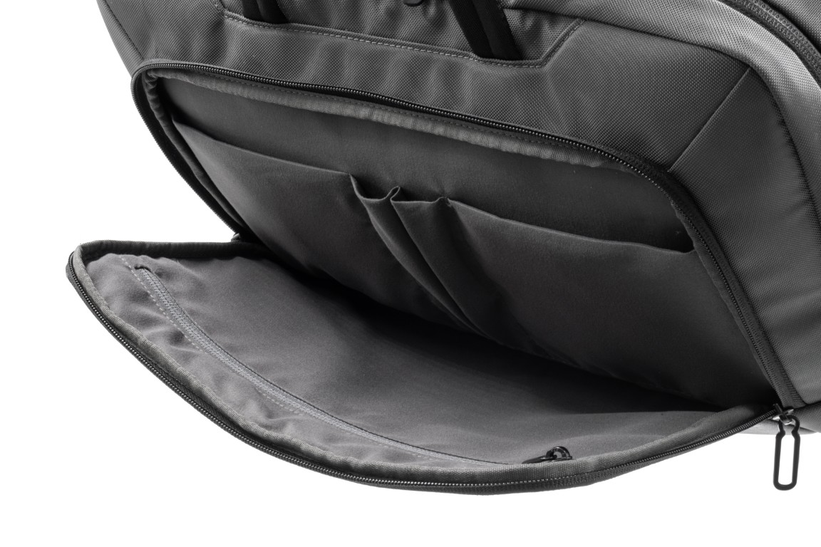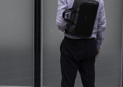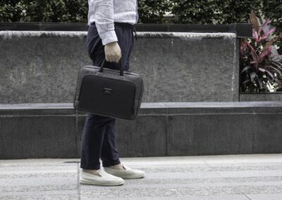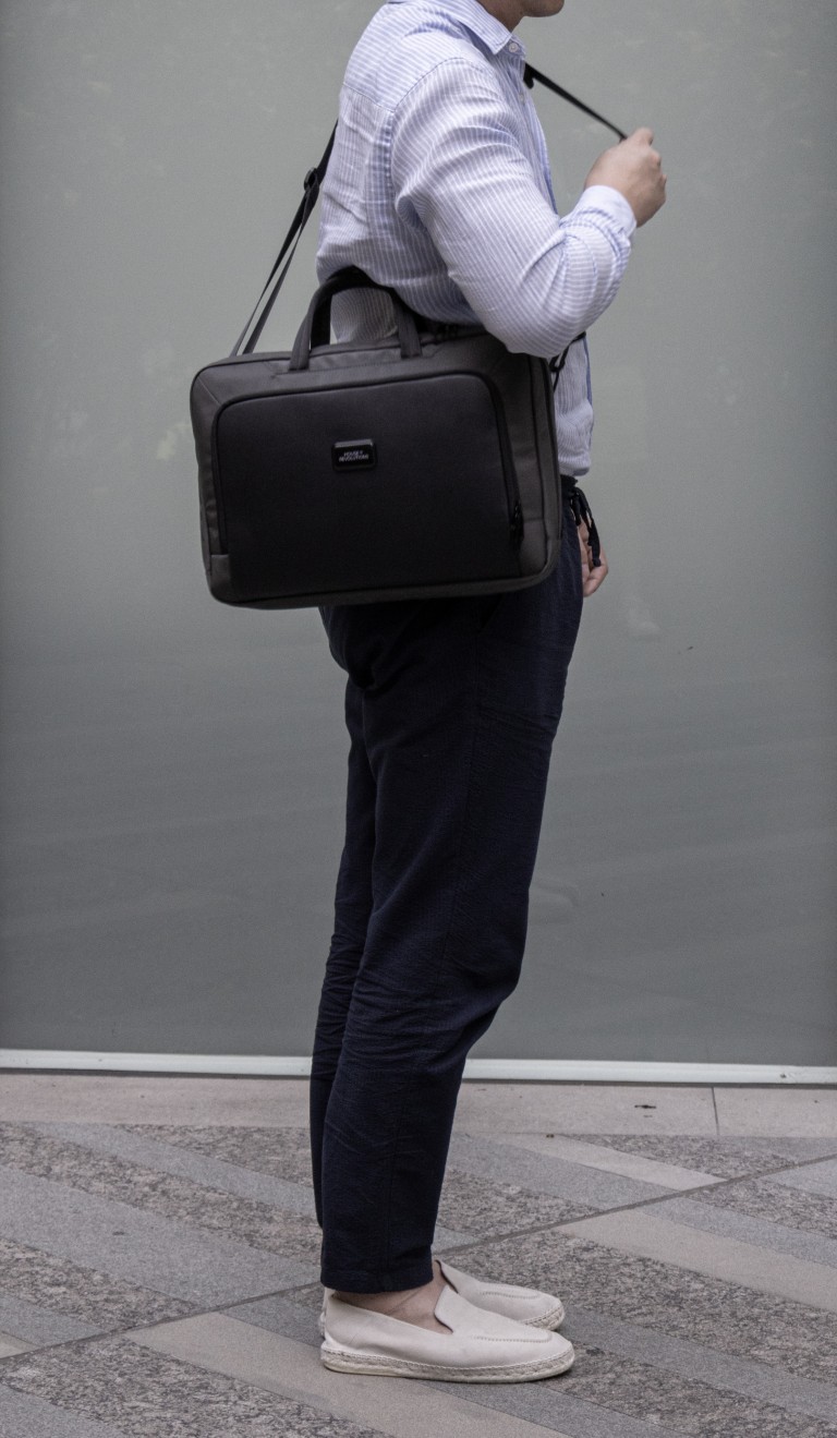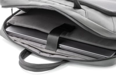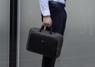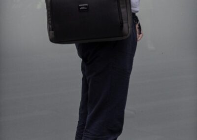 Sustainable work bag for work, travel and beyond – SBS Zipper – Smart Storage compartments – Shockproof padding – 800D watter & stain repellent recycled ballistic fabric – Accented with vegan letaher