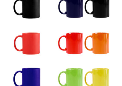 Microwave-friendly ceramic mug in bright colours with matte finish. Wide, round base and roomy handle